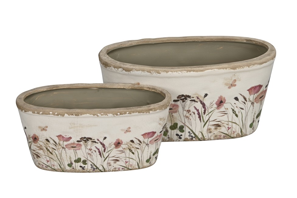 Este elegante set de dos bases de cerámica con delicados diseños florales es ideal para embellecer cualquier espacio. Su funcionalidad como bases para cubrir macetas no solo protege las plantas, sino que también añade un toque decorativo a su entorno. Perfectos para quienes buscan combinar estética y practicidad en la decoración de interiores o exteriores.