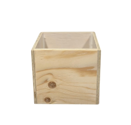 Cajón de madera natural con interior impermeabilizado, medidas 11.5x21x10 cm. Perfecto para almacenamiento resistente y protegido en espacios variados.