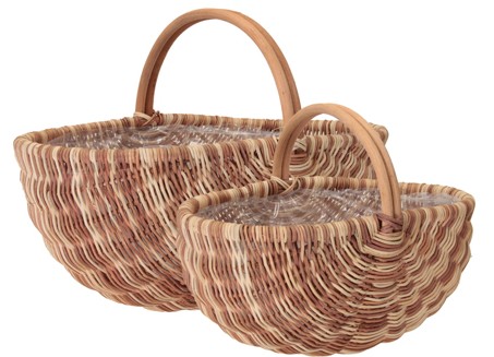 Este set de dos cestas en colores naturales y con asa, es ideal para la creación de arreglos florales. Su diseño vibrante y funcionalidad las convierten en una opción perfecta para embellecer cualquier espacio. El interior de plástico asegura durabilidad y facilidad de limpieza, permitiendo un uso versátil en diversas ocasiones.