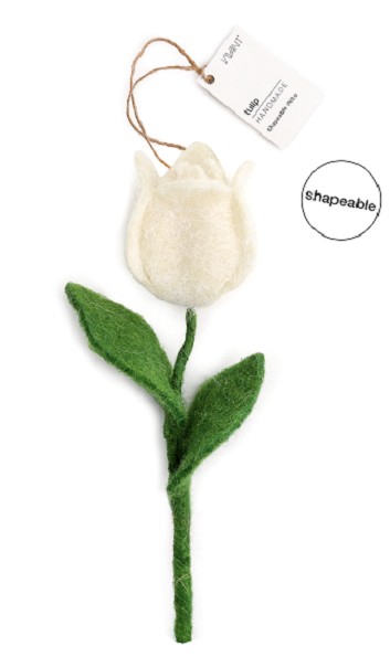 Tulipán artesanal de fieltro, delicado y moldeable, con un acabado suave y natural. Su diseño minimalista y elegante lo convierte en un detalle decorativo único, perfecto para dar un toque especial y atractivo a cualquier escaparate.