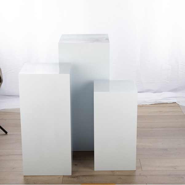 Este set de tres columnas cuadradas blancas es perfecto para exhibir objetos o decorar eventos. Su diseño apilable permite una fácil organización y personalización del espacio, adaptándose a diversas necesidades decorativas. Su estética minimalista y elegante se integra armoniosamente en cualquier entorno.