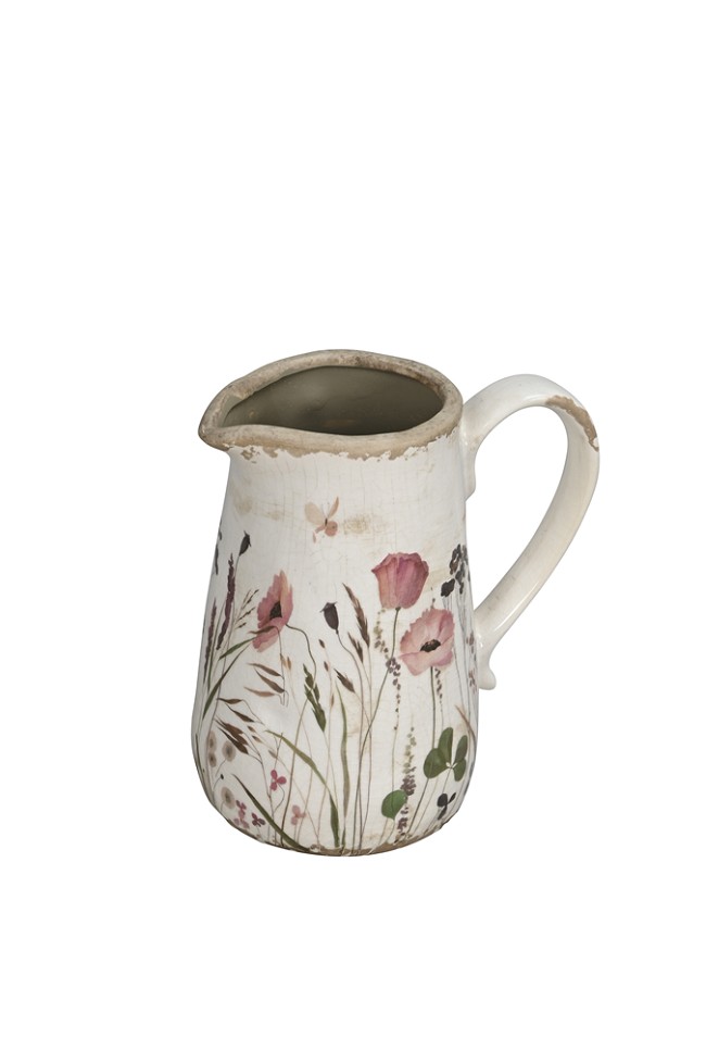 Esta jarra decorativa adornada con delicados diseños florales, es el complemento perfecto para cualquier hogar. Su elegante estética la convierte en una opción ideal para exhibir flores frescas o secas, añadiendo un toque de frescura y color a su espacio.
