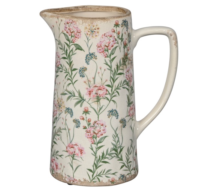 Esta jarra decorativa blanca, adornada con delicados diseños florales, es el complemento perfecto para cualquier hogar. Su elegante estética la convierte en una opción ideal para exhibir flores frescas o secas, añadiendo un toque de frescura y color a su espacio.