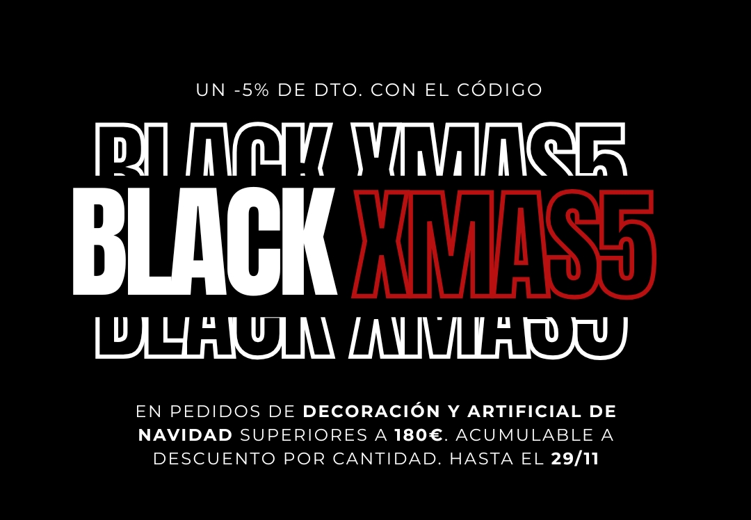 Esta vez te traemos un 5% de descuento en toda nuestra decoración y artificial de Navidad, un descuento acumulable a los descuentos por cantidad 🎄